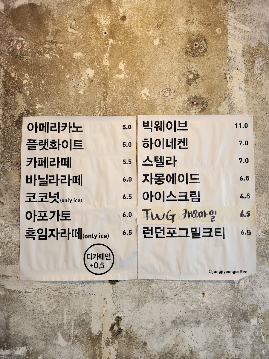 JUNG JIYOUNG COFFEE ROASTERS HWAHONG Menu